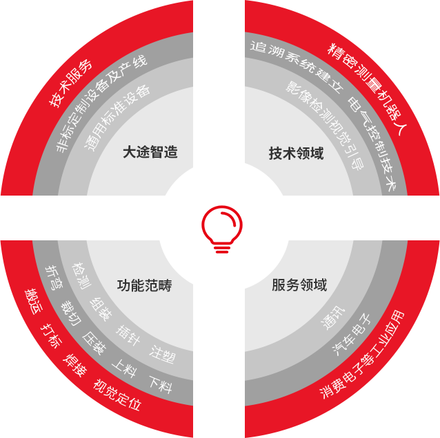 多年来积累的研发与制造经验,大途精密对塑模,3C,汽车电子等制造业,有着全面而深入的经验。可就客户制程:埋入、折弯、裁切、检测、装配、插针、上下料、搬运、打标、焊接,视觉定位等提供专业的智能制造解决方案及高质量的服务。